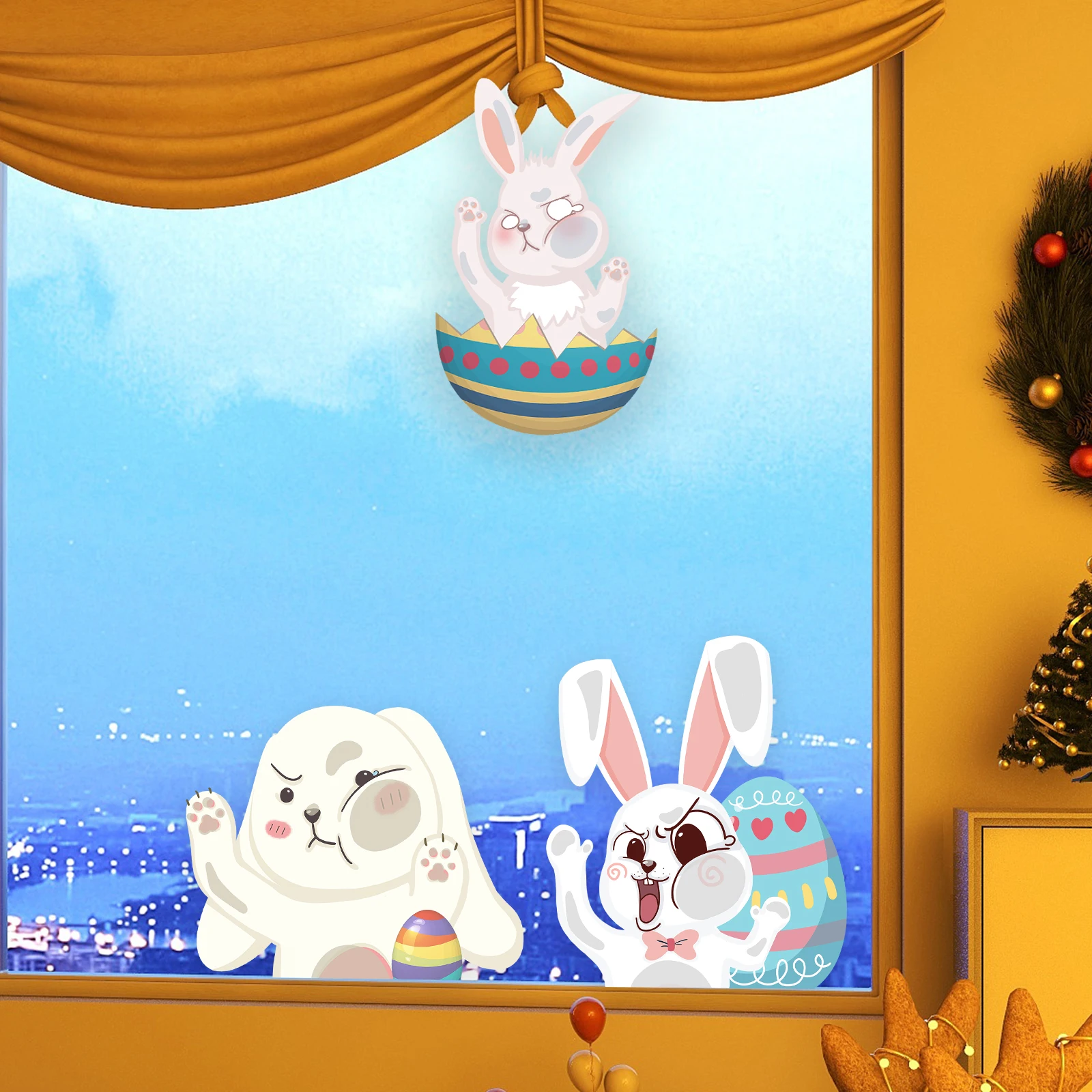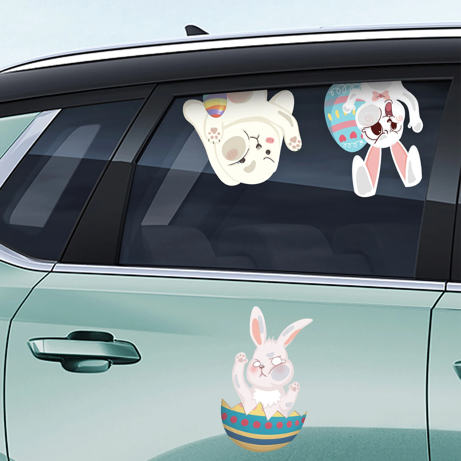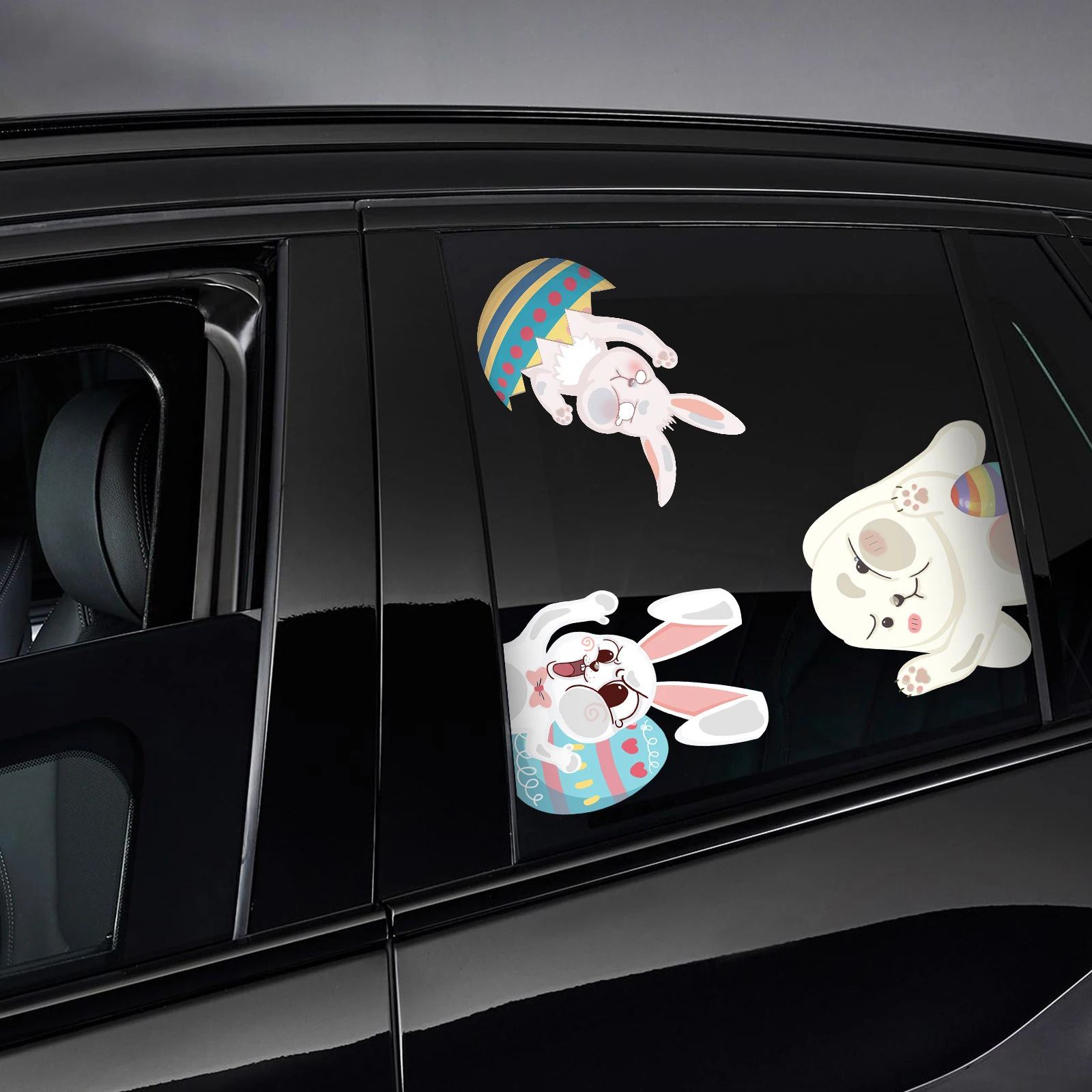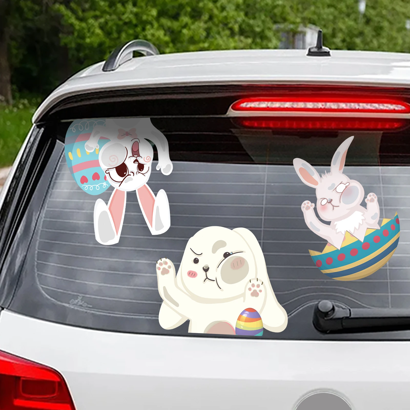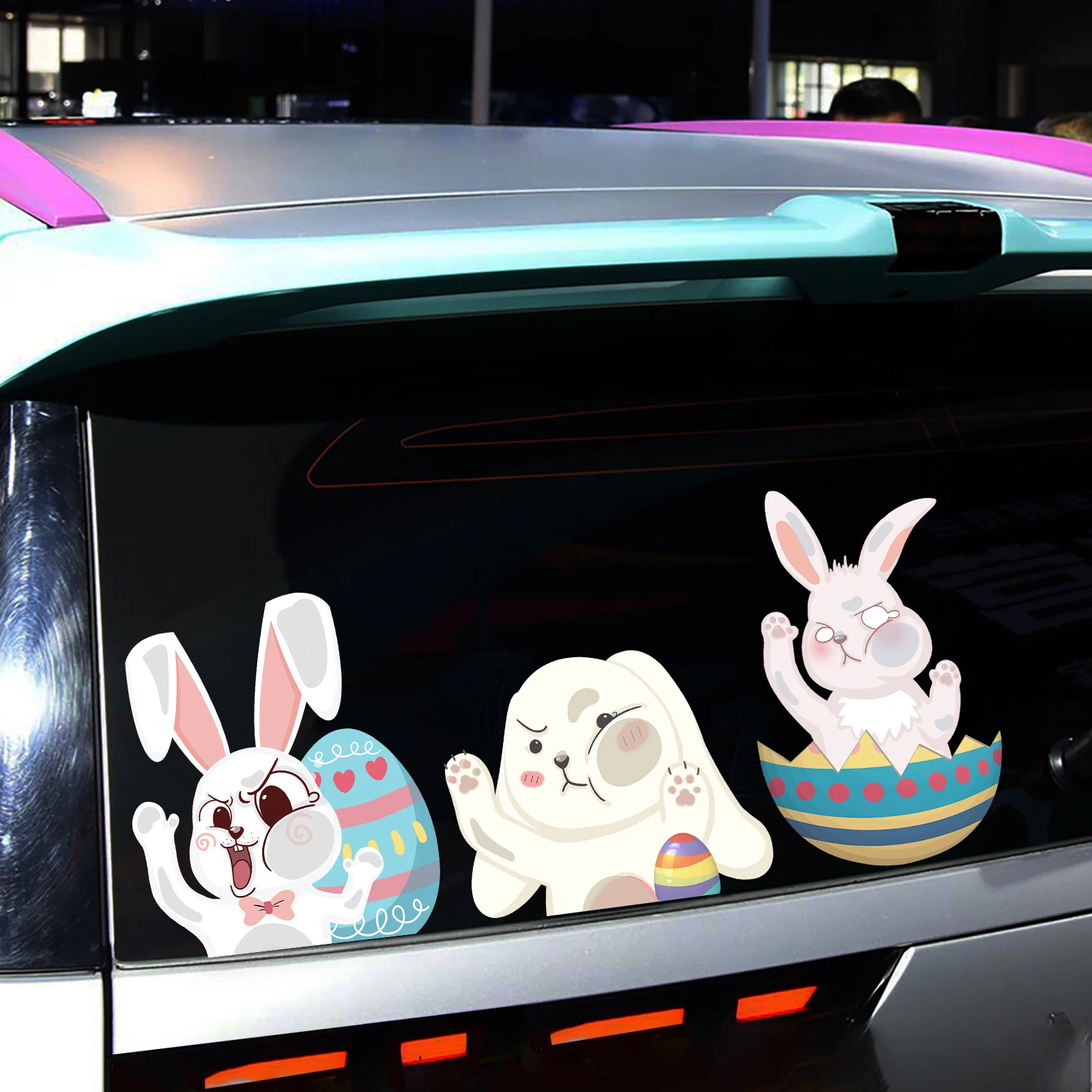 3 Funny Rabbits Hitting the Glass Stickers DIY Colorful Animal Sticker for Happy Easter Car Styling Window Body Decal Decoration