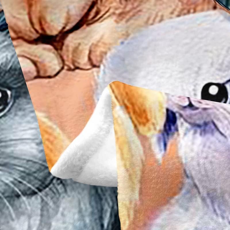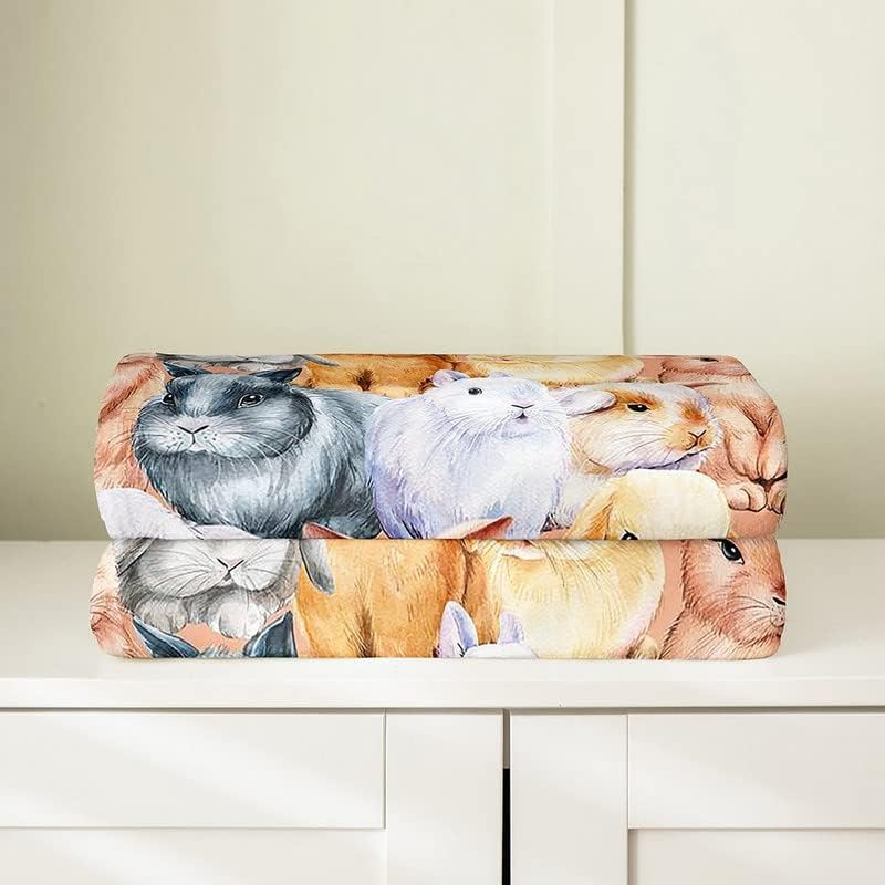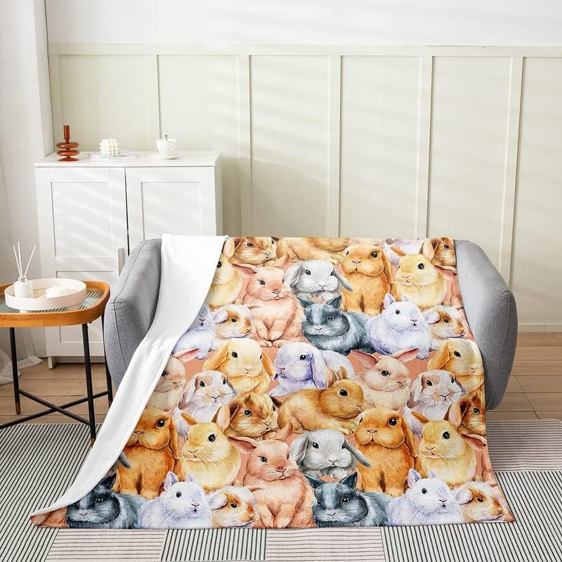 Rabbit All Season Bed Blanket Kids, Cute Rabbits Flannel Fleece Throw Blanket Watercolor Fuzzy Blanket for Kids Boys