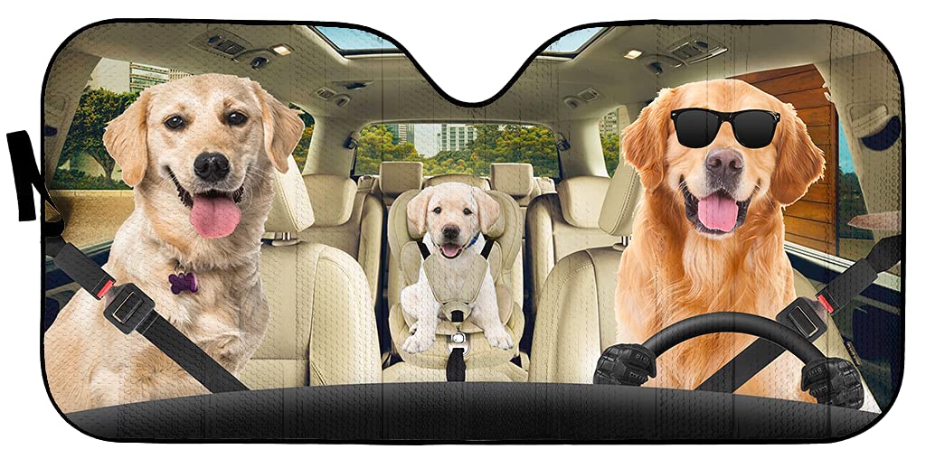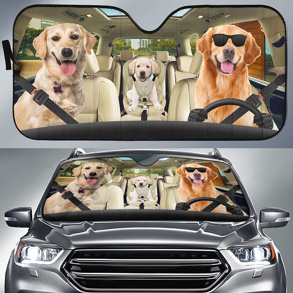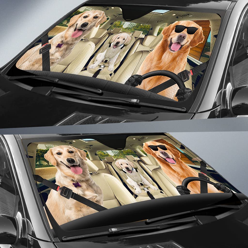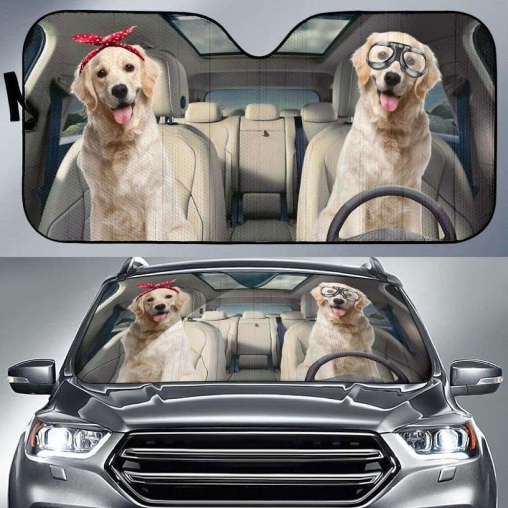 Golden Retriever Wearing Sunglasses Driving Car Windshield Sunshade