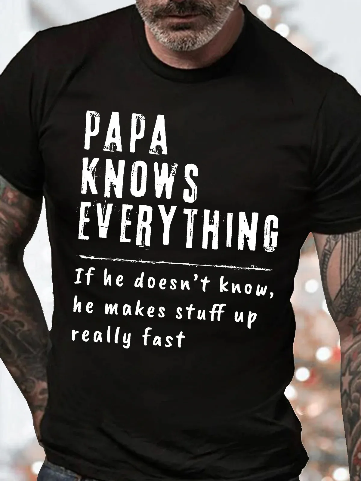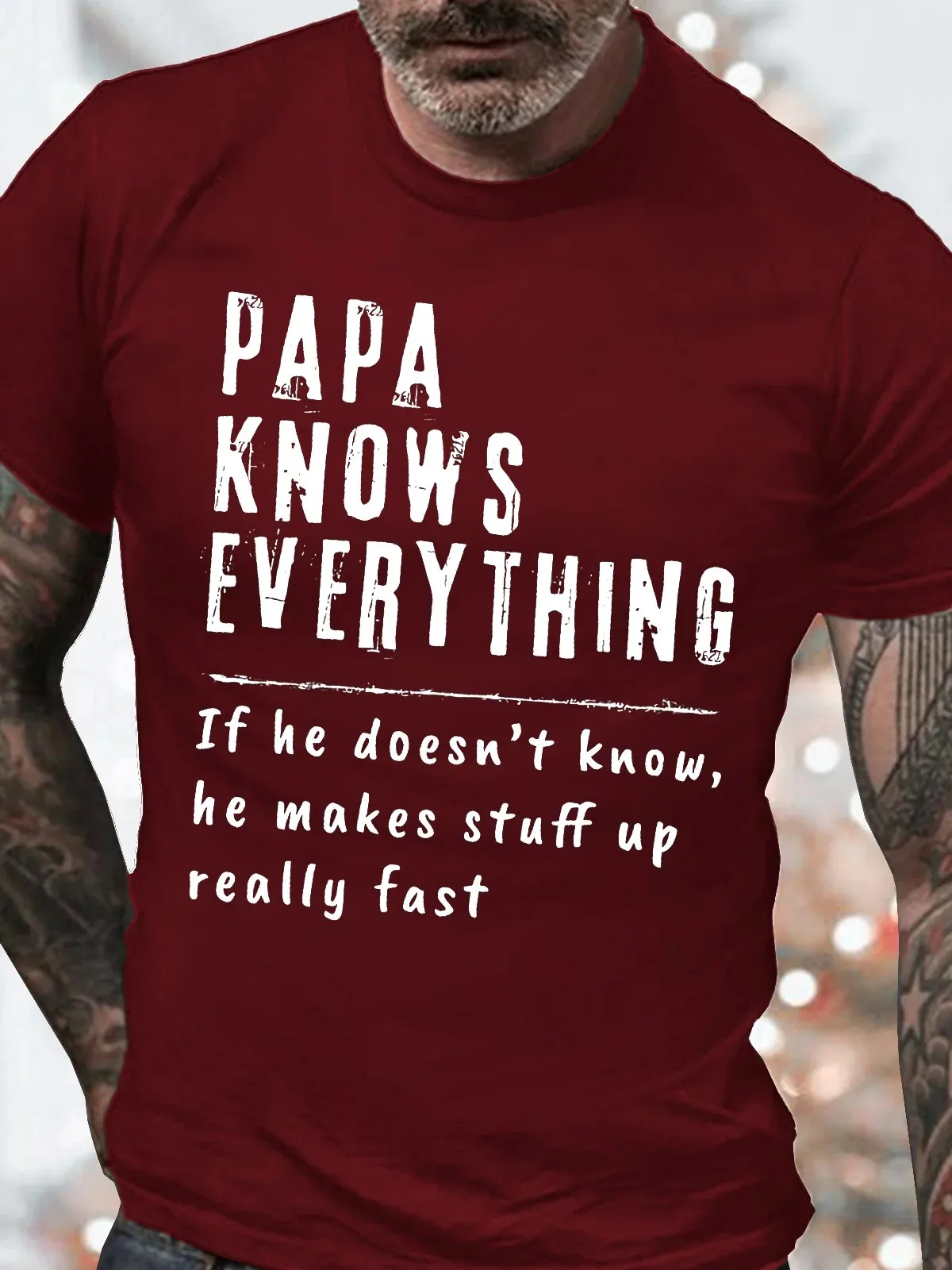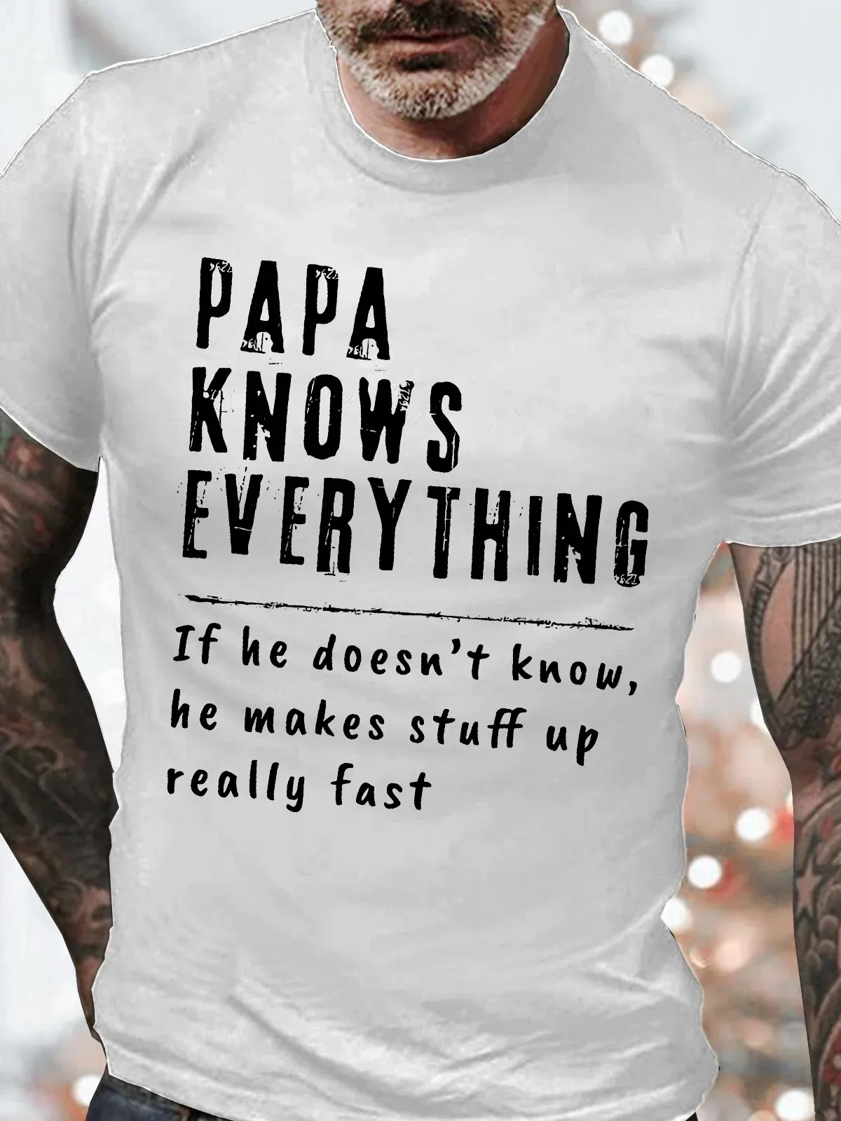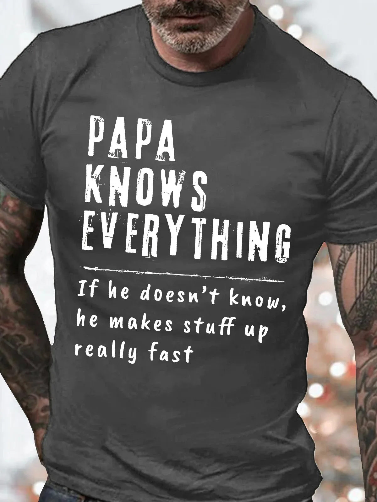 Men's Papa Knows Everthing Funny Graphic Print Casual Cotton Loose Text Letters T-Shirt